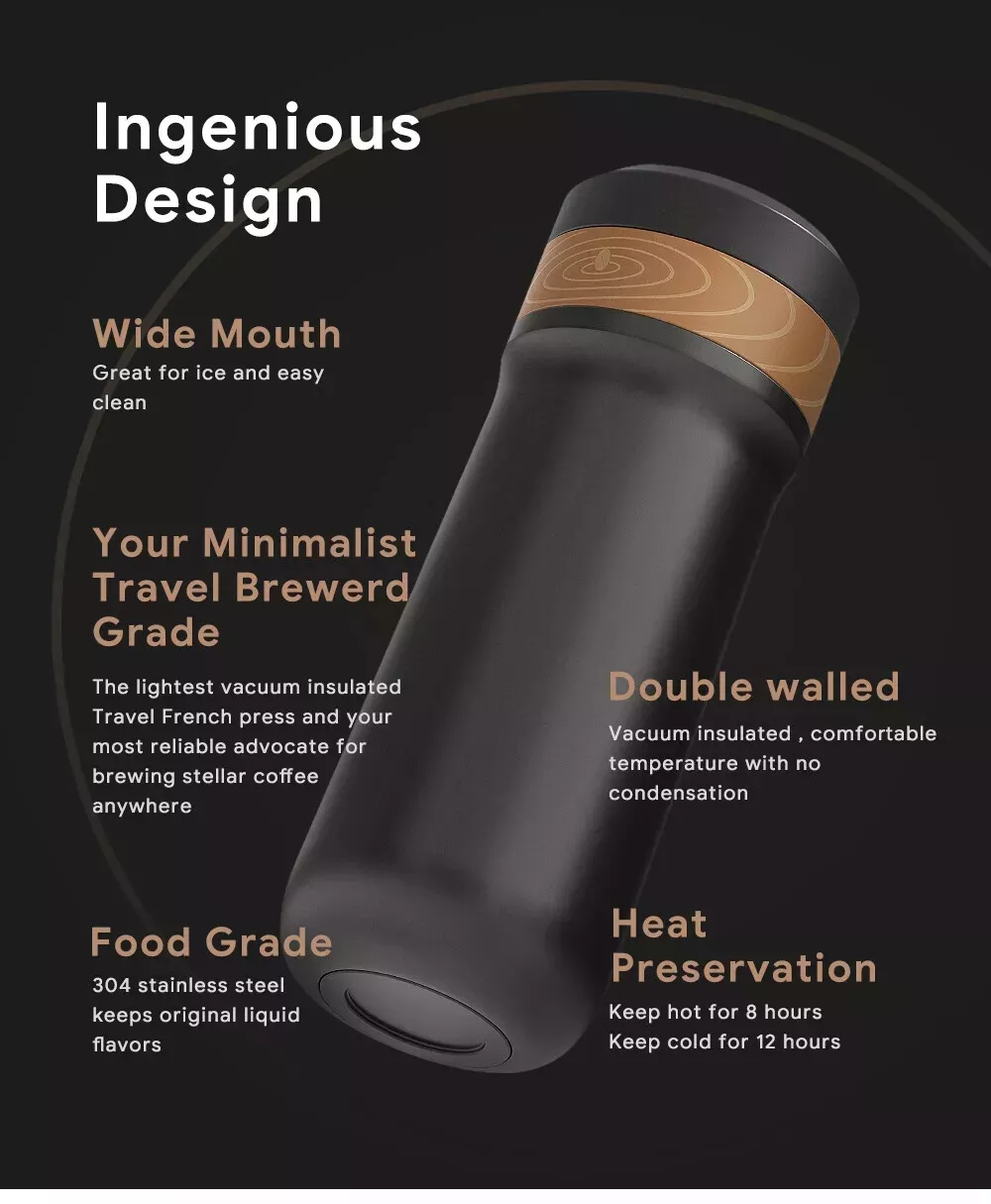 320ml French Press Coffee Maker Stainless Steel Vacuum Insulated Travel Mug Cup